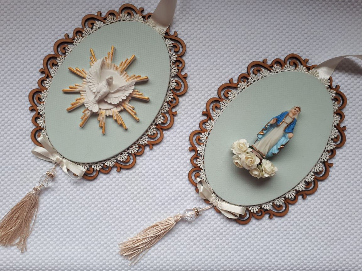 Imagens do escapulário: Espírito Santo e Nossa Senhora das Graças